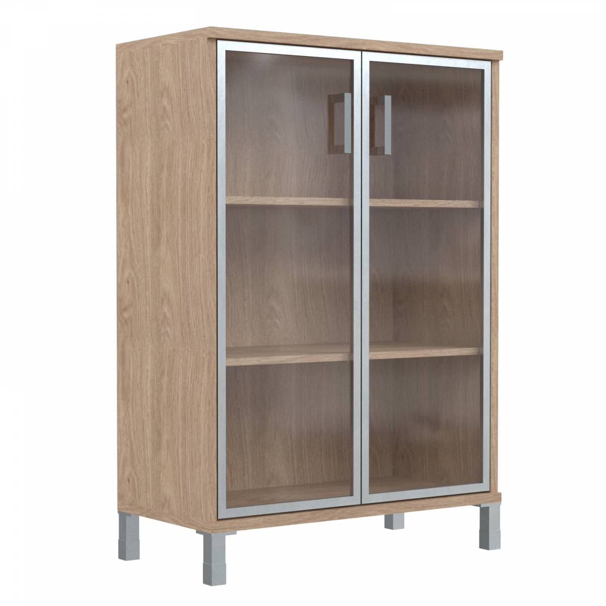 Шкаф низкий со стеклянными дверьми в AL-рамке B 410.4 Дуб Девон 900х450х920